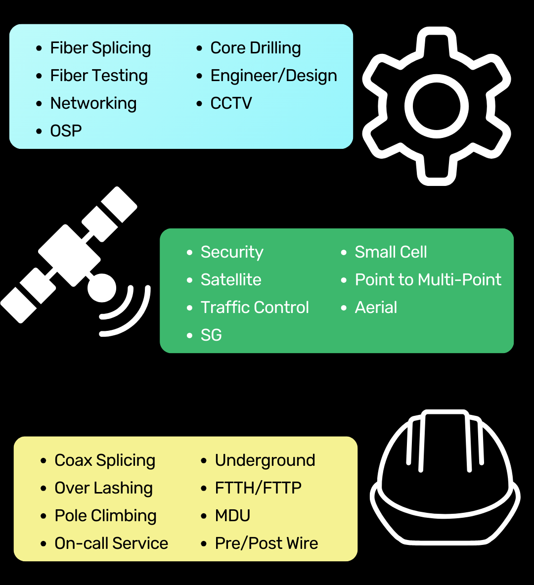With a proven track record of excellence, supporting telecom residential and commercial solutions, as a trusted strategic business partner, we strive to add value and enhance our client’s operations. With reliable skilled labor in construction, design, engineering, installation, repair, and plant maintenance, we leverage the highest quality equipment and provide innovative specialized services.